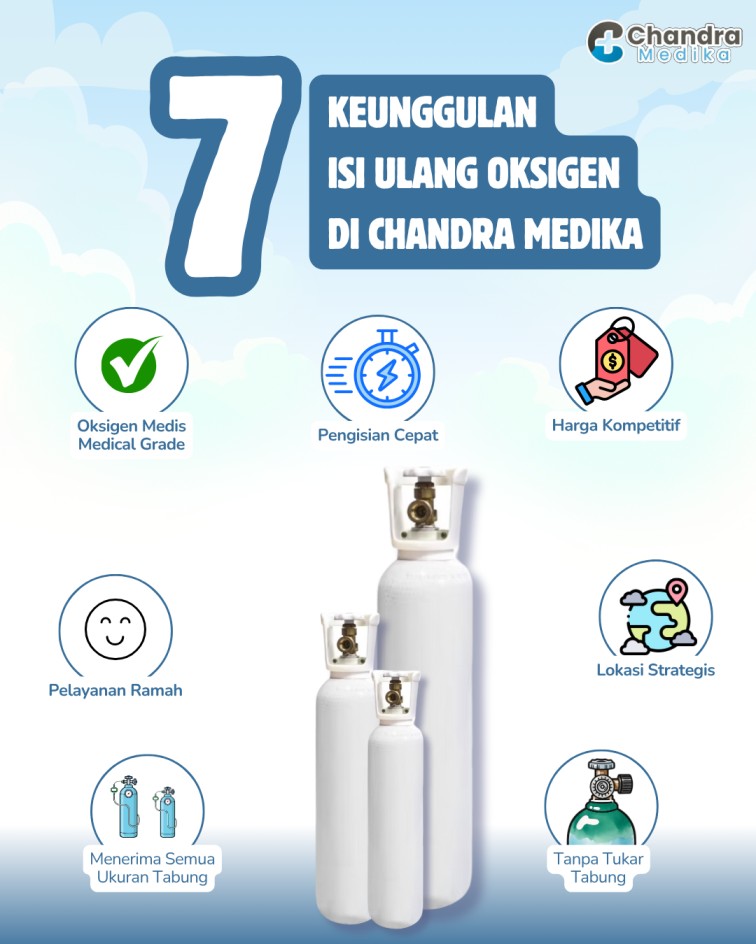Bagi Anda yang sedang mempertimbangkan tempat isi ulang oksigen yang tepat, artikel ini akan menjelaskan 7 keunggulan utama isi ulang oksigen di Chandra Medika Jakarta sehingga Anda bisa merasa lebih yakin dan tenang saat mengisi ulang tabung untuk kebutuhan keluarga maupun fasilitas pelayanan kesehatan.